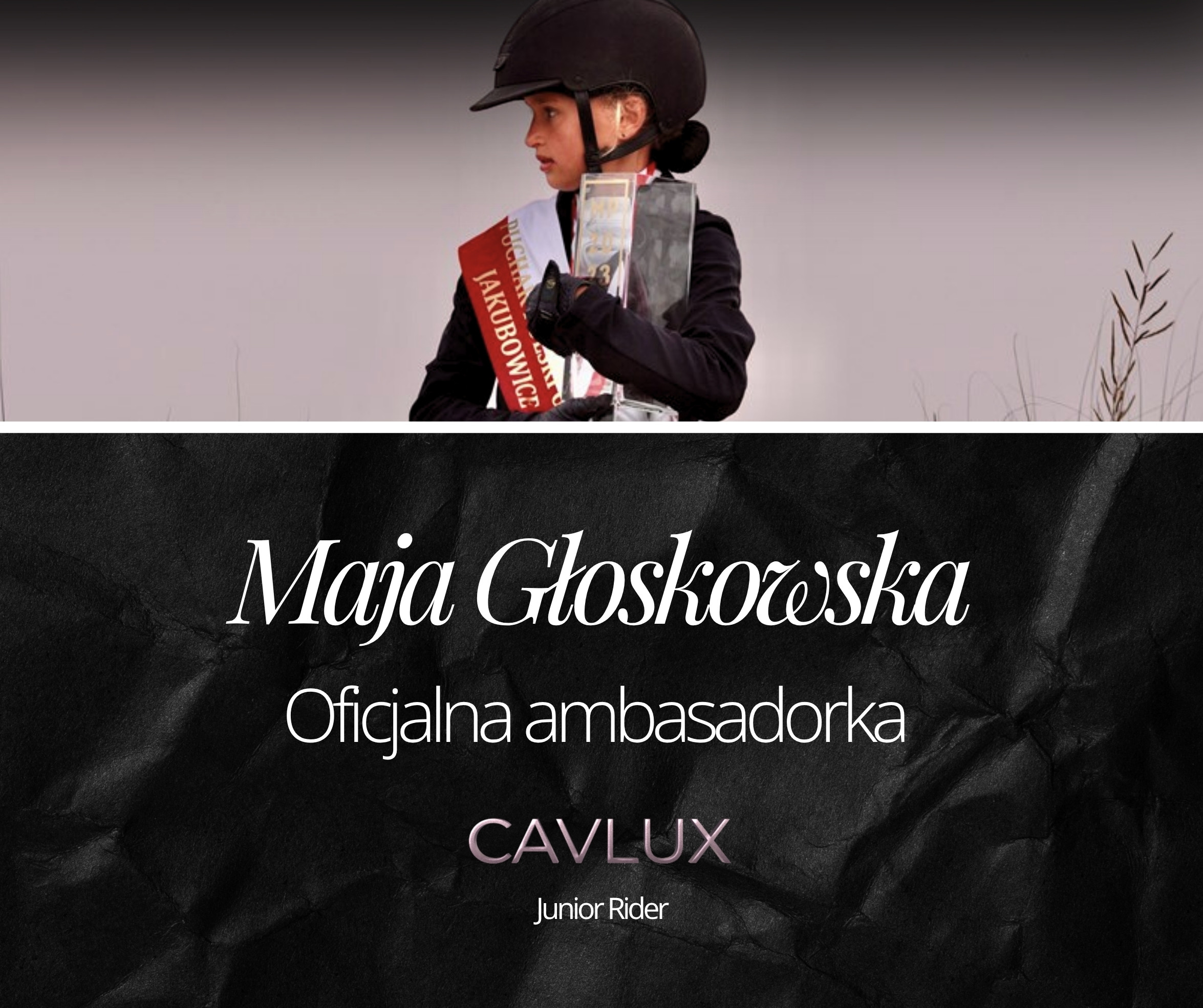Mistrzyni Polski w kategoriach kucykowych, uczestniczka Cavaliada Future i CSIO Sopot Young Stars. Jako ambasadorka paki jeździeckiej Cavlux Junior Rider pokazuje, jak dobrze zaprojektowana paka wspiera młodych jeźdźców w treningach i startach.